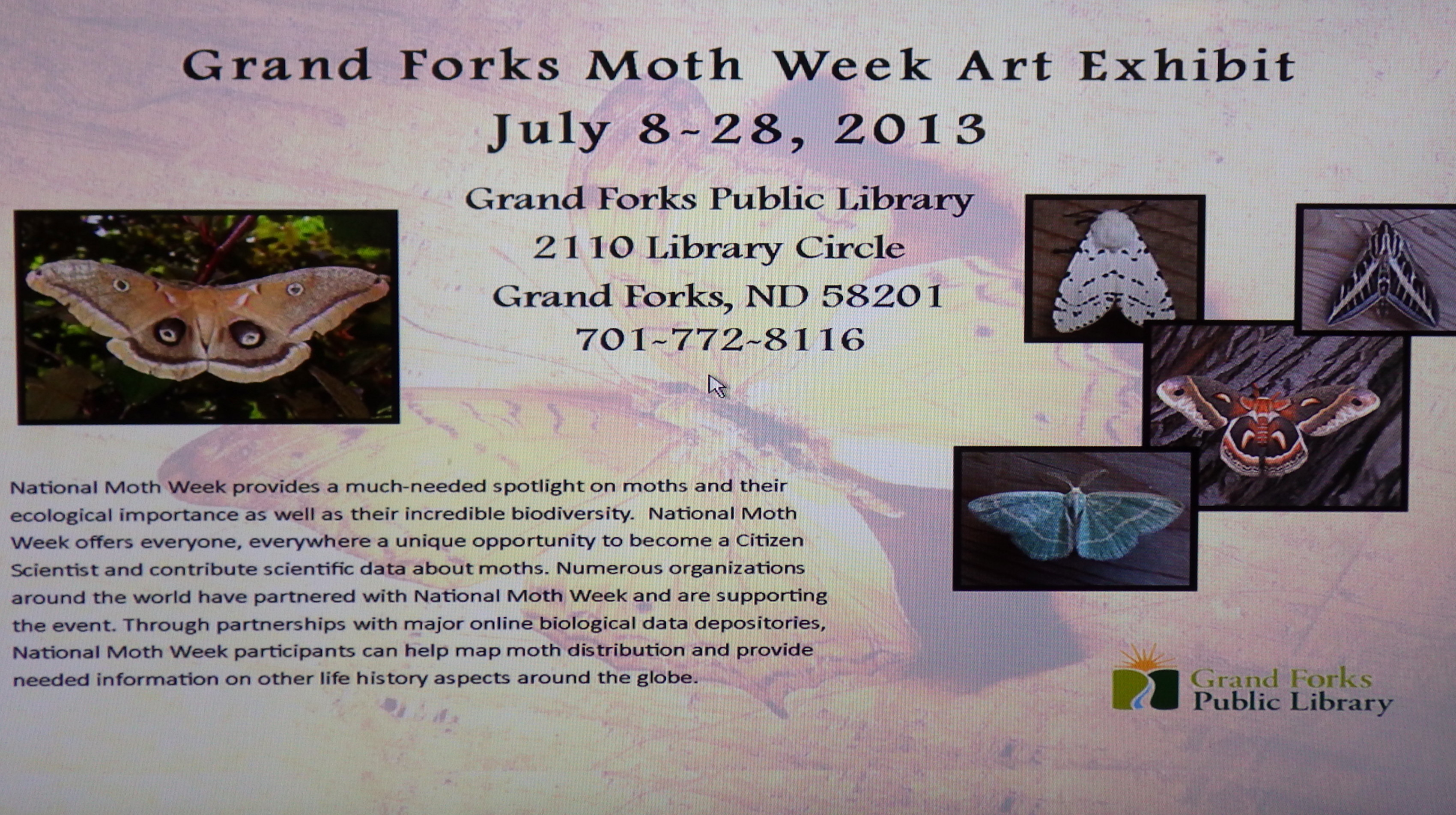 1. Exhibition Title: Moth Week Art Show to be held at the Grand Forks Public Library.